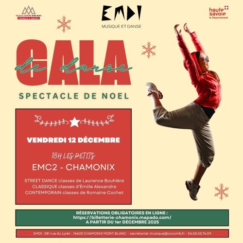 Display mapPlongez dans la féerie de Noël avec nos jeunes danseuses et danseurs ! Du classique élégant, du contemporain poétique et l’énergie du street dance : un mélange explosif qui promet un moment inoubliable pour petits et grands. Venez partager un soir d’étoiles, de musique et d’émotions. Un spectacle chaleureux, pétillant, et rempli de surprises…